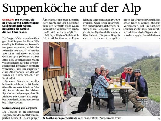 19. September 2015: Artikel in der Zürichsee Zeitung