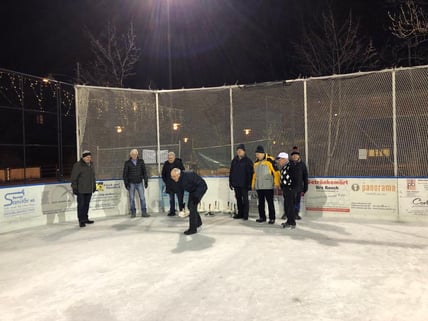 Das Eisfeld, direkt vor unserer Turnhalle, brachte Felix, technischer Leiter, auf die Idee, ein Eisstockschiessen durchzuführen.