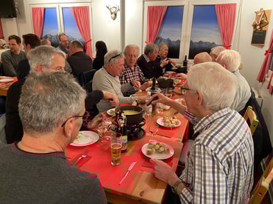 Nach zweijähriger, Corona-bedingter Pause, organisierte Jean wieder einen Fondue-Abend in der Schlifi. 13 Männerriegler verbrachten bei einem feinen Fondue und einem guten Glas Wein fröhliche Stunden iin geselliger Runde.