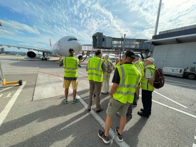 Nachdem jeder von uns eine gelbe 'Visitor Services' – Weste und einen Ausweis gefasst hatte, begann der sehr interessant Rundgang durch die weitläufige Anlage des Flughafens.
