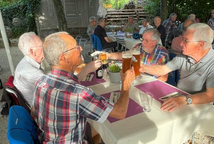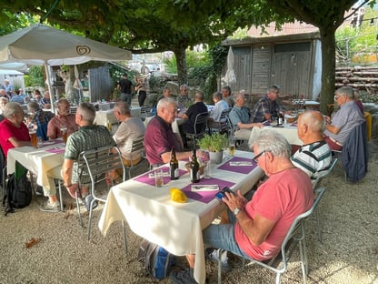Bei diversen feinen Salaten und Wein speisten die Männerriegler in geselliger Runde an einem grossen runden Tisch. Zum Abschluss liess Hans F. in Diabildern seine letztjährige Veloreise in den Süden Italiens Revue passieren.