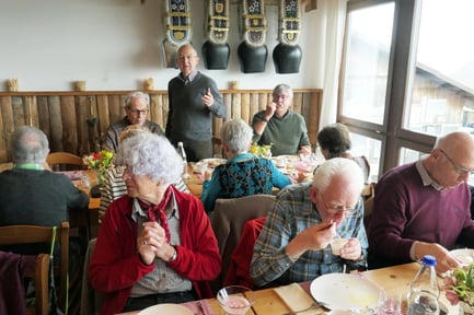 Nach dem Apéro genossen wir feines Rindsragout mit Chässpätzli und Rotkraut, zum Dessert dann den traditionellen Fruchtsalat.