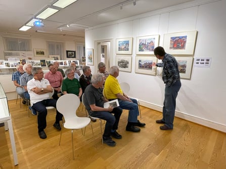 Erich Stark, der Präsident und Ausstellungsmacher führte uns 14 Männer-riegler durch die Ausstellung. Sehr eindrücklich wird anhand von Fotos, Graphiken und Bildern die Entwicklung und Veränderung von diesem grossen Areal am See aufgezeigt.