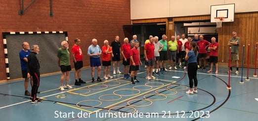 Unsere letzte Turnstunde vor den Weihnachtsferien, am 21. Dezember, fand grossen Zulauf: 26 Männerriegler wollten noch etwas für ihre Fitness tun. Ebenso wichtig war nachher das Zusammenhöckeln zu einem letzten gemeinsamen Bier oder Glas Wein im alten Jahr.