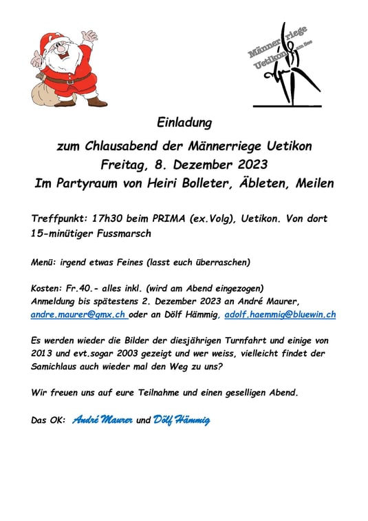 Auch dieses Jahr durften wir Männerriegler uns wieder auf einen gemütlichen Abend freuen.