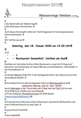 18. Januar 2020: Restaurant 'Sonnenhof', Uetikon am See